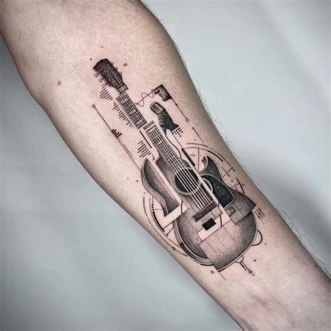 Acoustic guitar tattoo by dr. What do guitar tattoos symbolize? My first ink done by cory at sacred skin tattoo in payson, az. Original idea by lester campa. Guitar head tattoo on below the neck:.