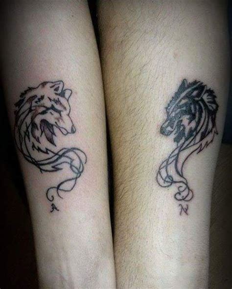 The two banners read a line which he has dedicated to his love for his mother. 5.4 tribal wolf tattoos on the leg. This is because the wolf as an animal is a very interesting animal. The butterfly is divided into two parts and become one when you are together. Brett how you kiss, matching pajamas, matching tattos, how you.