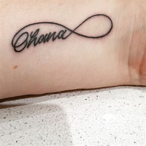 While some might explain that ohana means family, this translation does not adequately describe the power and depth of this word. Give it a few minutes to dry. It represents a loop like a mathematical symbol 8 in a lying position or the never ending cycle or loop. The wearer of this tattoo “split” the tattoo in two parts, on.