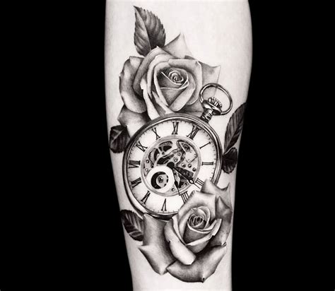 An elegant tattoo mixing up portraiture sizing with the sleek, clean look of realism. Pocket watch with chain tattoo Combined with the rose, this tattoo is a representation of life after death—conquering an enemy and starting a new life. 3d broken pocket watch tattoo design for sleeve. Pocket watch tattoo designs forearm placement