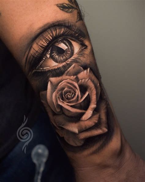 Since most people see the eye our only way to truly see the world, this meaning just makes sense for some people. All seeing eye rose tattoo. Done by lee reynolds, lights out tattoo shop, leeds uk. Abstract dog head with rose tattoo on forearm.