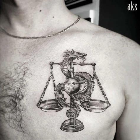 The artist uses a dark color pallet giving the scales a black color with a hint of dark blue to make the tattoo as realistic as possible. Sword and justice scale in lady hands tattoo design for shoulder. Memorial lady justice tattoo on man chest. 36 best libra tattoo designs. Lady justice tattoo on left shoulder.