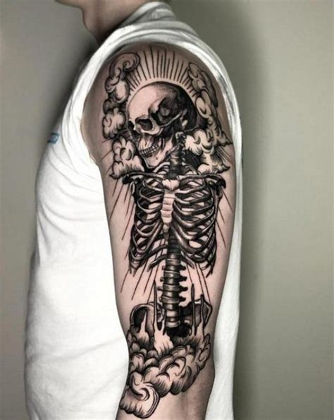 Half butterfly half skull tattoo. There is a skeleton tattoo on full sleeves of a man. While fish tattoos are incredibly common, especially the majestic japanese koi or the ubiquitous dolphin, the fish skeleton is a more mysterious design. However, this trend is not new. The possibilities are endless, but the underlying theme could not be more wicked, which is.