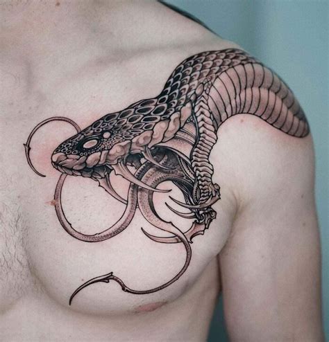 Skull of a snake tattoo 3.2 2. Buried snake chest tattoo source: Japanese snake tattoos are usually done as a part of a sleeve or whole back piece. Snake and flower side tattoo design. 3d snake neck tattoo source: