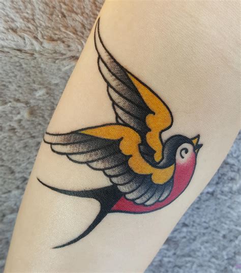 Flying bird tattoos often show birds in a single file line flying together and are common on the collar bone or back. 2.swallow tattoo on both wrist originally posted by pinterest They traditionally symbolized survival from a shipwreck, and superstitious sailors also believed that they were symbols of protection from drowning. When the calligrapher finishes creating your. Old school traditional.