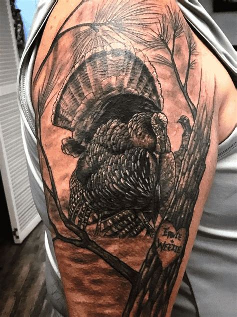 See more ideas about hunting decal, turkey hunting, turkey tattoos. Turkey tattoos convey timeless magic across a vast range of demographics. John plans to ink a big boar hog skull and gator on his other arm. It took 16 hours worth of work check out these guns douglas whitmore stanhope, nj Check out these deer tattoos!