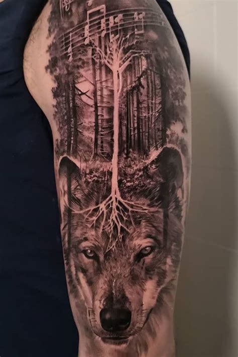 In addition to this modern take on the tribal style, there are traditional tribal tattoo designs that can be adapted into a wolf image. In some cases, a lone wolf can symbolize past betrayals. Birds and butterflies fluttering out of the tree and the wolves wailing at.